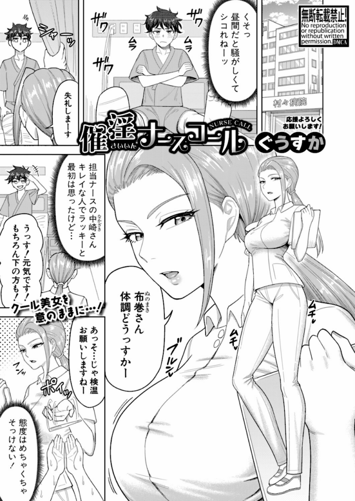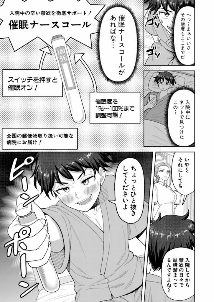 入院生活を送る主人公は、有り余る性欲を持て余していた。そんな鬱屈とした日々を打破するため、彼はネットである怪しげなアイテムを購入する。その名も「催淫ナースコール」。